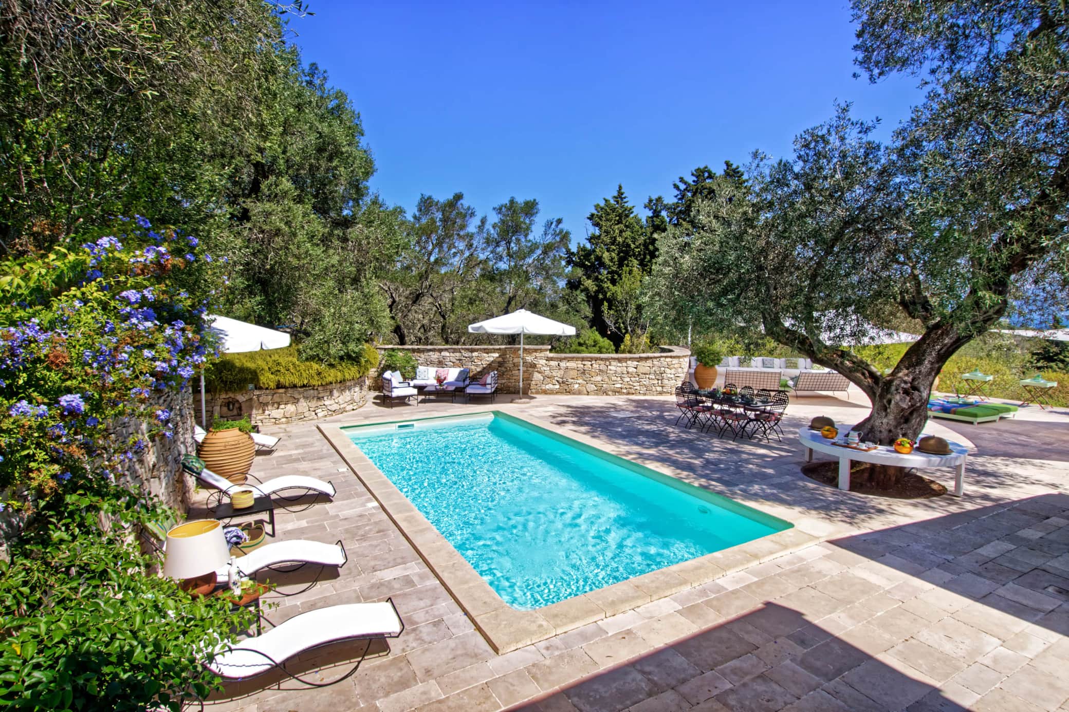 The villa offers a full range of amenities designed to ensure a relaxing, worry-free stay. Guests can enjoy a private pool with a sunbathing area, outdoor spaces equipped for al fresco dining, and panoramic views. Inside, you’ll find spacious, air-conditioned bedrooms, a fully equipped kitchen, a bright living room, and high-speed Wi-Fi.